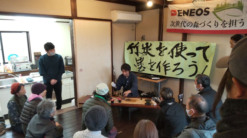 佐久島の里山整備の一環で、竹炭から習字で使う墨をつくります!