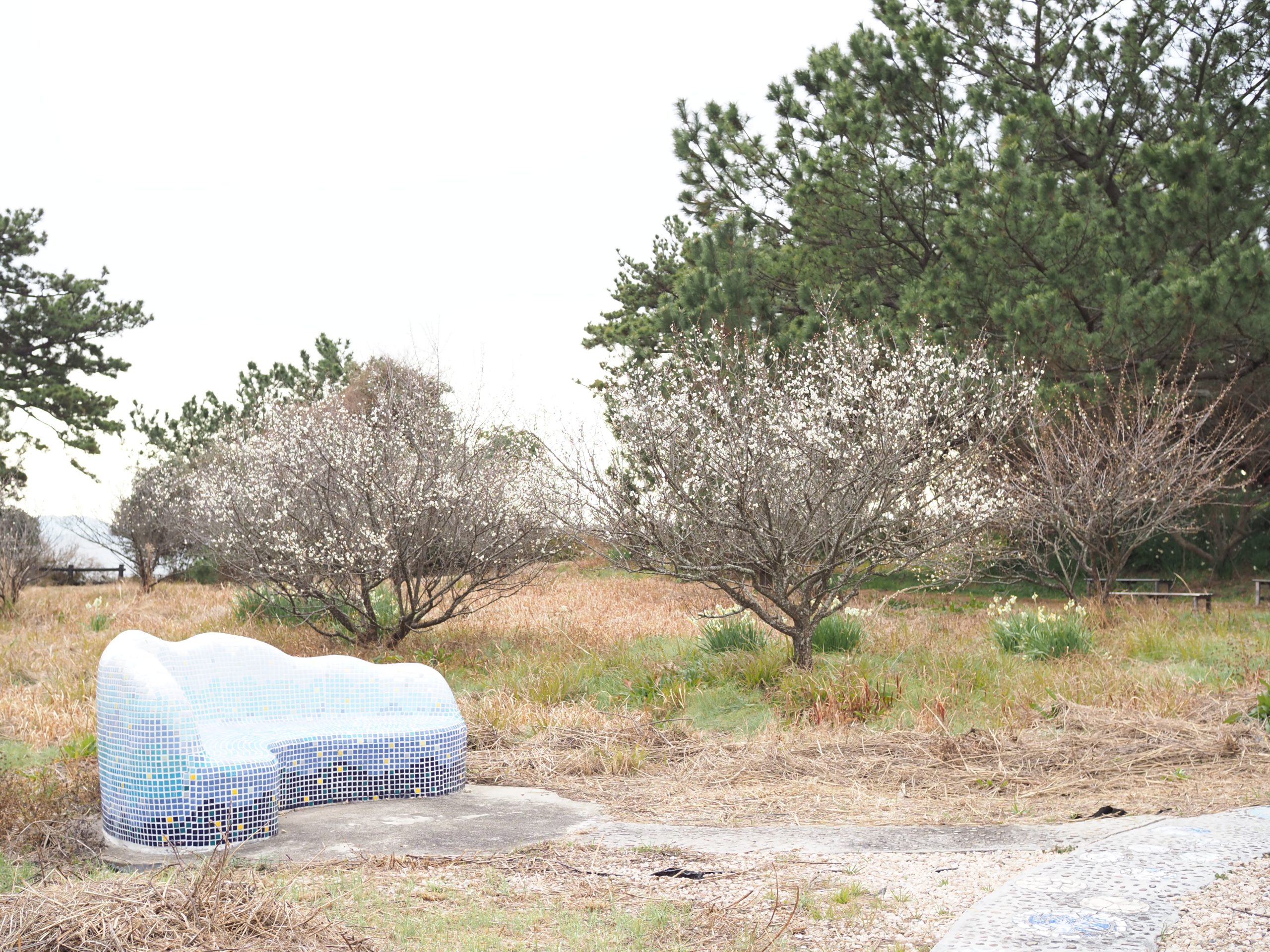 大島梅園では、凛と咲く梅の花とともに、季節の移ろいをゆったりと感じることができます。