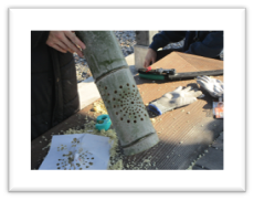 春にとっておいた種を、泥に混ぜてゾステラマットに塗り付けてます。マットはダイバーさんが海底に設置します。