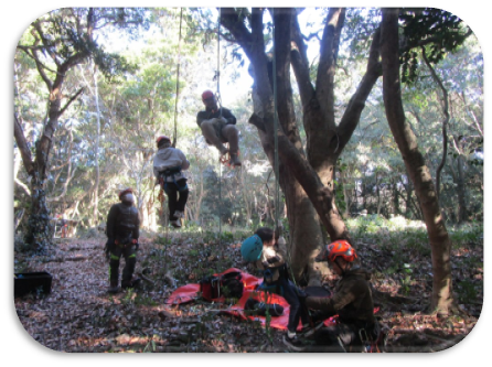 元気な山とは?山のお話を聞いて、雑木の除去作業しました。その後はツリークライミングを体験してもらいました。お父さん、お母さんは子どもそっちのけで楽しんでました。もちろん主役の小学生はすぐコツをつかんで木のてっぺんまで登りましたよ。