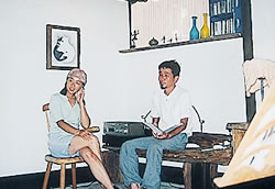 ご自宅の一角、京子さんの絵の傍らでバッハを聴くひととき