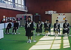 3月9日、佐久島中学校では平成15年度の卒業式が行われました。ほとんどの生徒は中学校を卒業した時点で島を出てしまうことから、卒業式には学校だけでなく島の思い出のすべてが脳裏を駆け巡り、巣立っていく生徒はもちろん、見送る日とたちにとっても、ことのほか感慨深い日となります。今年の卒業生はただ一人。学校への想い、島への想いを後輩たちに託し、それを一人ずつに伝え、呼びかける形で答辞が読み上げられました。しおかぜ通学の生徒を含めて、今年度の全校生徒7名。一人ひとりが主役の島の学校ならではの、感動的な卒業式でした。